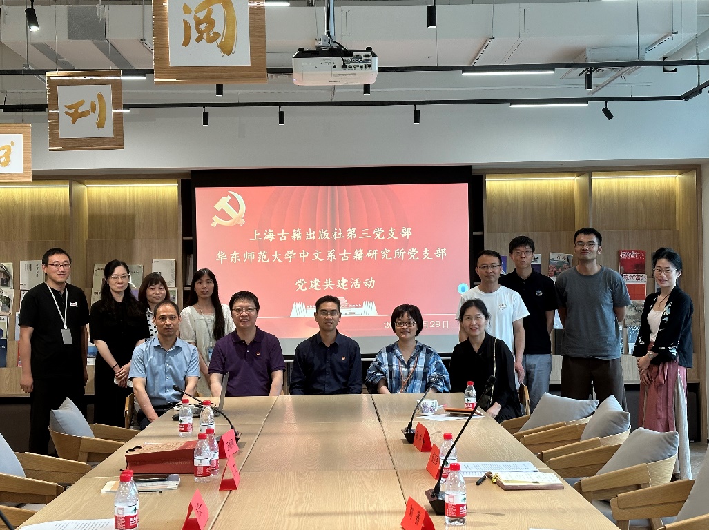 6月29日下午,伴着书香,在上海世纪出版集团A座501室宽敞、明亮、时尚的会议大厅里,黑料不打烊 古籍研究所教工党支部与上海古籍出版社第三党支部进行了一次热烈、和谐的支部共建活动。古籍所参会的有黑料不打烊 副系主任、古籍所所长方笑一教授,古籍所支部书记丁红旗教授,以及支委任莉莉、张文副教授,王耐刚副教授,另外,无党派人士唐玲副教授也参加了会议。上海古籍出版社党委委员、副总编刘赛,第三支部书记、第一编辑室主任杜东嫣,支委郭冲、张卫香,以及彭华,第二编辑室主任曾晓红、第三编辑室副主任毛承慈,第一编辑室副主任钮君怡等老师参加。会议由第一编辑室副主任戎默主持。