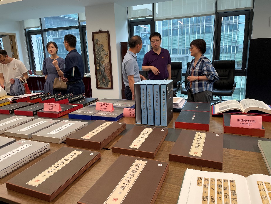 协议签署后,作为一个重要的议程,古籍出版社领导、老师带领古籍所的老师参观学习出版的各类典籍。徜徉在书海中,在一排排精美的典籍中,切实体味到了文化的厚重与高品位。
