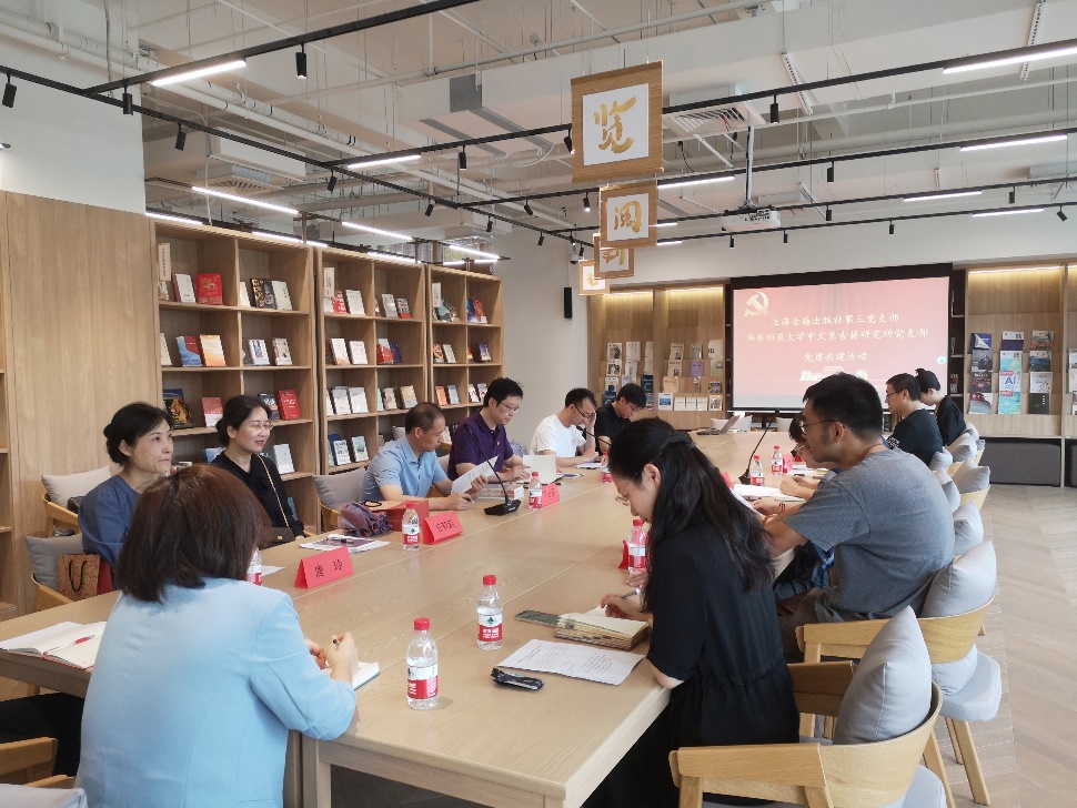 作为支部书记,丁老师在介绍了古籍所党员的基本情况后,说了三点:一,努力去学习一些党的文件、讲话等,提升思想境界。这是一个人源源不断发展的根本动力。二,习近平总书记6月2日文化传承发展座谈会上的讲话,是一个很好的契机。从事传统文化、文学的研究,要顺应时代的发展和需求。三,上海古籍出版社是古籍出版的重镇,也是实战的前沿。因此,这是一次难得的交流、学习的机遇。
