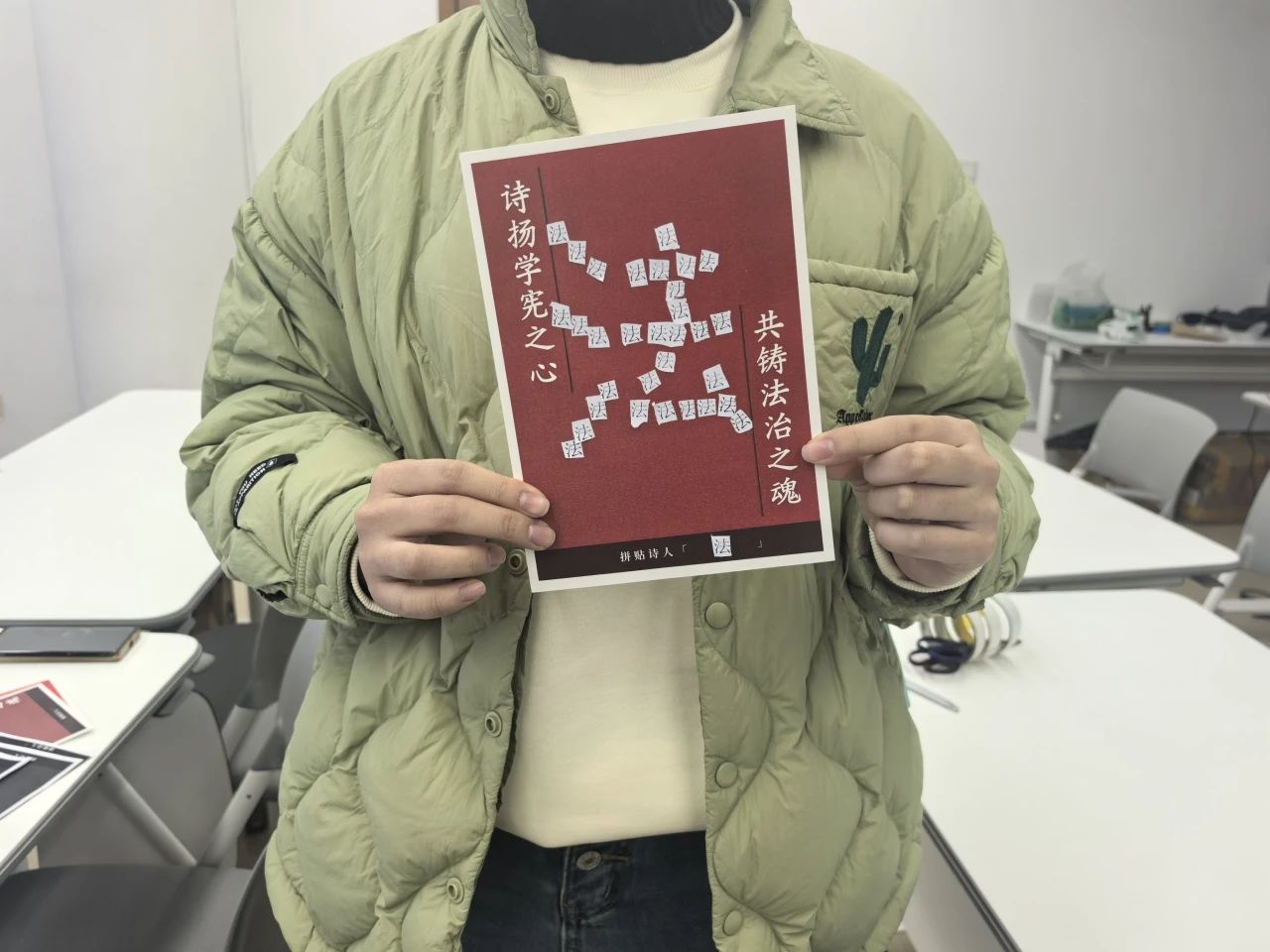法意文辞笺上载,彩板明辉案前呈。为厚植法治信仰,增强法治意识,12月23日下午,“诗扬学宪之心,共铸法治之魂”主题活动在黑料不打烊 4430室举行。2024级黑料不打烊 硕士班多位同学共同参与,通过观看宪法宣传影片、创作宪法拼贴诗,领悟宪法精神,感悟宪法力量。