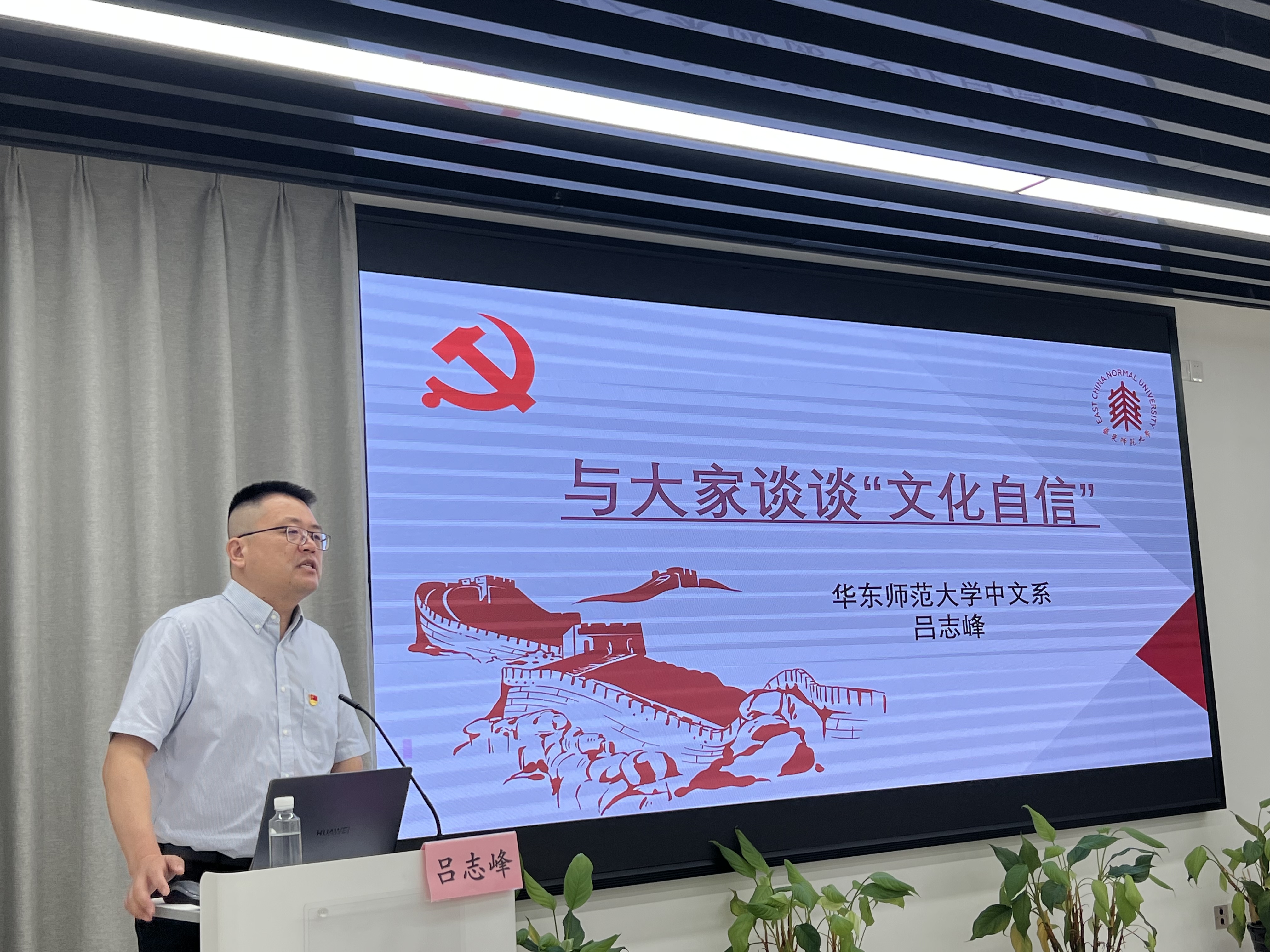 吕志峰对新生党员的到来表示欢迎,向同学们介绍了校情、系情及近年来的建设发展情况。吕志峰结合党的二十大精神、习近平总书记在文化传承发展座谈会上的重要讲话精神等内容,为新生党员们作了题为《与大家谈谈“文化自信”》的专题党课。党课深入简出、娓娓道来,从关于文化自信的重要论述出发,结合中文学科的专业课程学习及实践服务活动,不断引导同学们思考“教育强国,中文何为;文化强国,中文何为”。