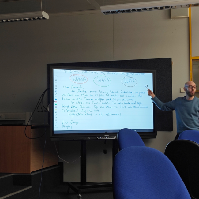 我在学校的适应期相对顺利。通过熟悉数据库、选课与试课,我最终注册了两门德语课和两门法语课。教授们的友善和耐心让我感到温暖,也给了我适应的信心。除了课程内容,在课上我也能感受到不同文化背景下的生活现象之差异,有时还有机会表达出来,这也是上课的趣味所在。
