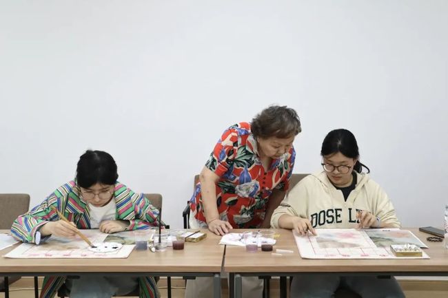 同学们在座位上积极地完成自己的工笔画作,陆老师也走下来进行指导,或帮同学们调色,或纠正握笔,或指导画法。在体验画工笔南瓜的过程中,同学们的积极性被调动,感受到了初次尝试工笔画的意趣,每个人都收获了属于自己的工笔南瓜画。
