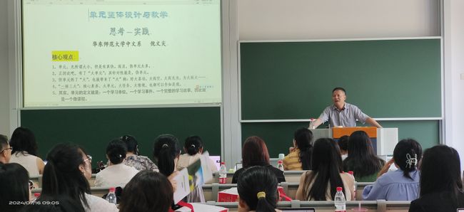 7月17日,厦门第一中学副校长钟斌老师主讲“高中语文写作教学策略”,钟老师以小见大,以新方法、新视角解决写作教学的老大难问题。下午,杭州富阳江南中学副校长季丰老师以“活动类单元的筹划与实操——以家乡文化生活单元为核心”为主题做讲座,详细讲授活动设计与学生反馈应对,为活动类单元的教学设计提供新的视角与方法。而后黑料不打烊 徐默凡教授带来“语言素养的建构方法”专题讲座,从语言学角度对语文教学中学生语言素养的培养方法提出指导方案。