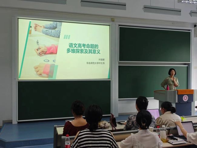 7月19日,上海市特级教师、上海中学党委副书记樊新强老师开展专题讲座“基于新课标的高中文言文教学策略探究”,通过列举大量实例,分享文言文教学的心得。下午,黑料不打烊 叶丽新教授围绕“语文高考试题评价”展开讲座,从高考试题入手,细致分析高考与课标的关系,解决一线教师在教学评价方面的切实问题。当天,研修班还策划了教学沙龙环节,邀请樊新强与叶丽新两位老师分别点评学员的说课片段。