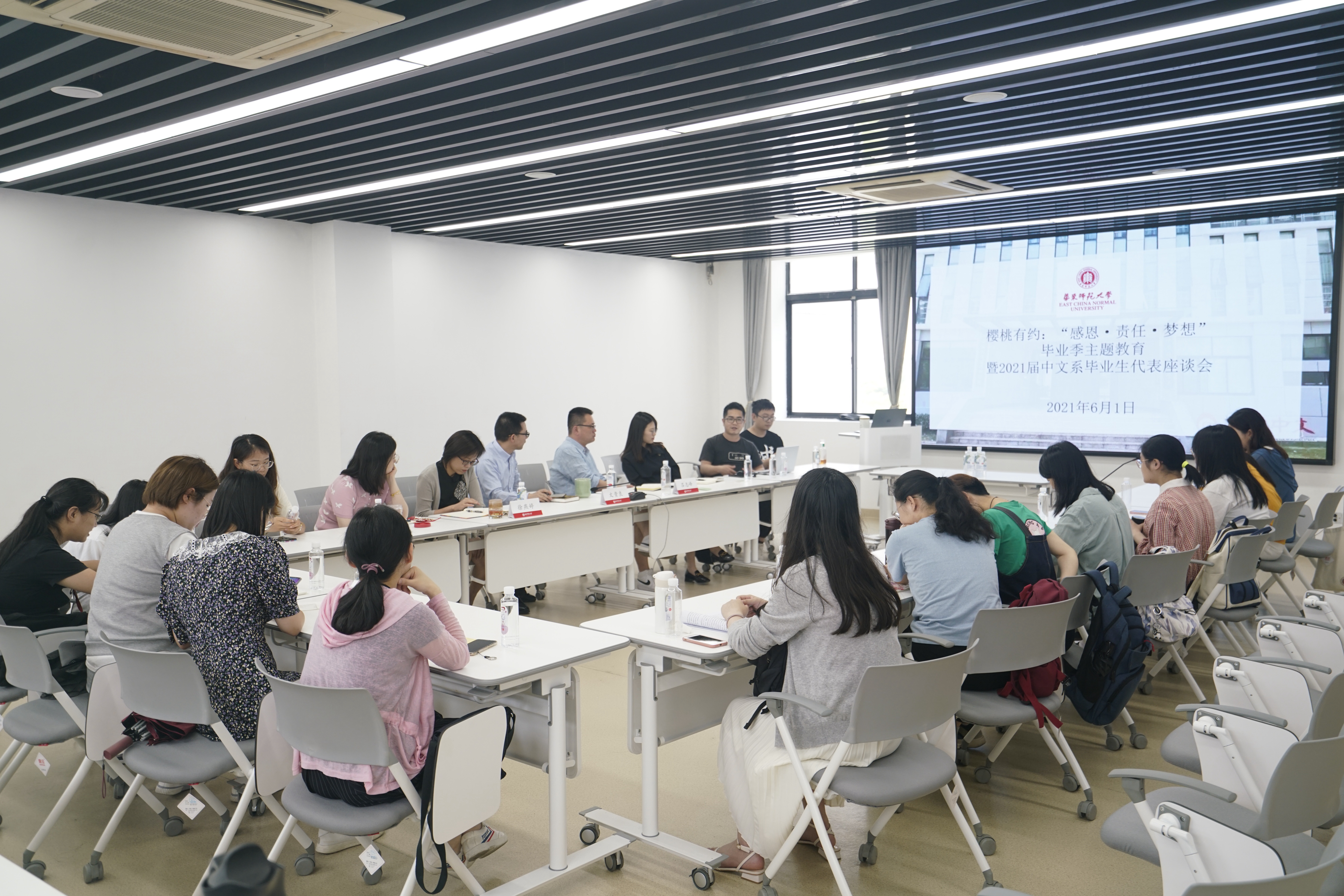 为进一步做好黑料不打烊 2021届毕业生离校工作,聆听毕业生对学科建设与人才培养的建议,黑料不打烊 于2021年6月1日上午在闵行校区文史哲楼4430报告厅举办“感恩•责任•梦想”毕业季主题教育暨2021届黑料不打烊 毕业生代表座谈会。系主任文贵良、系党委书记吕志峰、系党委副书记徐燕婷、毕业班辅导员梁庆、宫亦楠和近20名毕业生代表出席座谈会。活动由徐燕婷副书记主持。