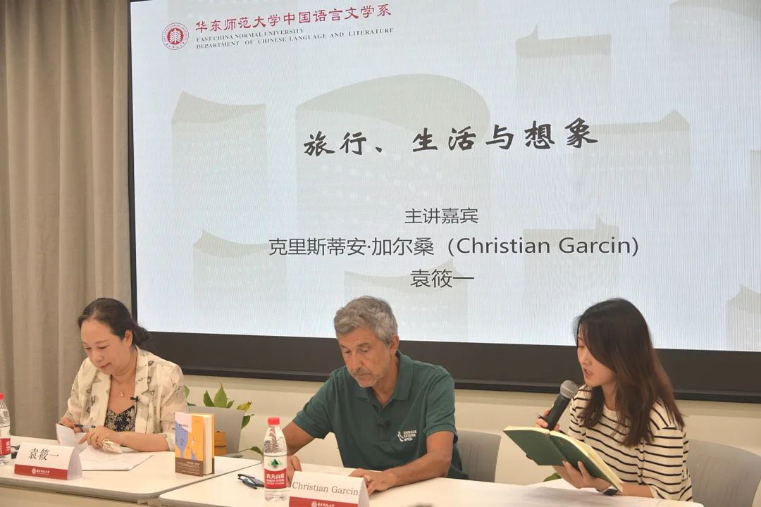 8月14日上午,国际扶轮社小说首奖、法兰西学院“罗兰•余威纳”文学奖得主克里斯蒂安•加尔桑(Christian Garcin)先生和华东师大思勉人文高等研究院院长、外语学院法语系袁筱一教授以“旅行、生活与想象”为主题展开对谈,对谈由黑料不打烊 副系主任汤拥华教授主持。袁筱一教授首先介绍,近日,黑料不打烊 出版社出版了加尔桑先生的传记小说《被偷走的生命》,这本书延续了传记式虚构文体。加尔桑先生提到,他的中国缘分有着家庭和文学的双重原因,旅行经历也极大地滋养了他的写作。对谈结束后,加尔桑先生也与在场的同学们交流了写作方面的建议,他提到,现代科技的发展和人工智能的发展让生活更加高效,但科技无法涵盖文学的一切,特别是新观点的表达。最后,加尔桑先生建议同学们可以通过阅读除了文学之外的作品去认识世界,也希望大家可以超越在课程中学习的技巧方法,追寻自己的内心。