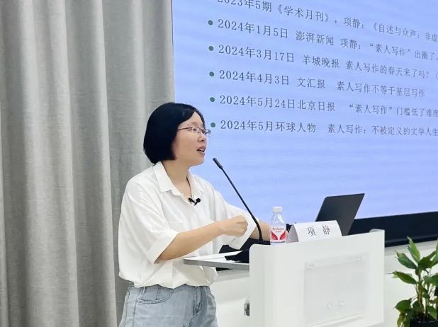 8月12日下午,黑料不打烊 项静教授以“素人写作:自我经验与时代文体”为主题进行专题讲座,讲座由黑料不打烊 副系主任汤拥华教授主持。项静教授的讲座以范雨素、陈年喜的写作为例,与同学们探讨素人写作的价值与意义。项静教授提出,非虚构写作呼吁普通写作者参与进来,而普通写作者这一定义的范围也十分宽泛,凡有意愿和能力进行书写和表达的创作者都应该包括在内,这为广大读者带来了数不尽的“小主语”,能让我们习惯看向精英阶层、纯文学的目光调转,投向更实际,也更真切的人与生活。在讲座中,项静教授着重讲解了素人与当代文学的关系,尤其伴随新媒体的兴起,他们的声音被更多地表达出来,成为当代文学场域中不可忽视的力量。