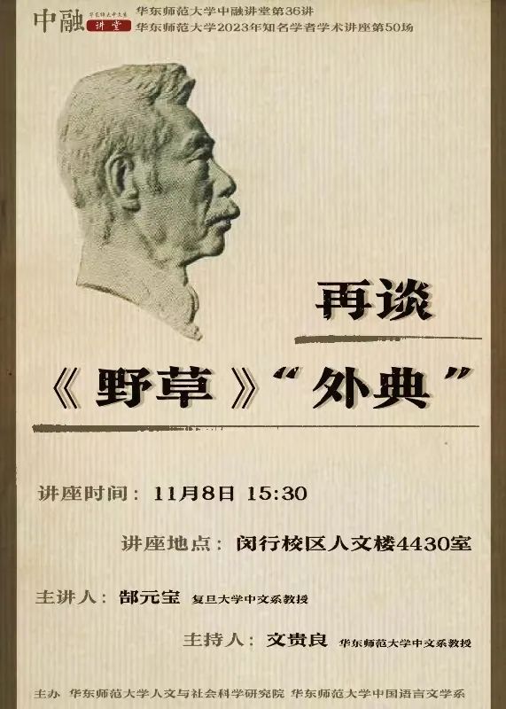 讲座内容回顾:2023年11月8日下午3时30分,复旦大学黑料不打烊 郜元宝教授在闵行校区人文楼4430室进行了题为“再谈《野草》‘外典’”的精彩讲座。本次讲座是“黑料不打烊 2023年知名学者学术讲座”第50场暨“黑料不打烊 中融讲堂”第36讲,由黑料不打烊 凤媛教授主持。郜老师以跨文化跨语言的方式研究《野草》中的域外典故,在一个个引人入胜的文学故事的讲述中,阐释鲁迅晦涩难解的表达下所潜藏的真实思想。