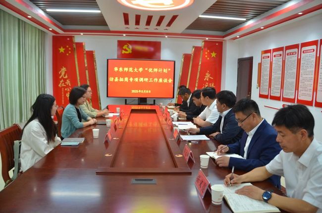 虞城县第一高级中学党委书记余坤向华东师大一行介绍学校发展情况,他指出,学校秉持“立德树人、全面发展”的教育理念,注重教学质量提升与学生个性化培养,近年来,学校在高考成绩、学科竞赛、素质教育等方面成果显著。在河南省2025届公费师范生优师计划毕业生双选会上,已有5名来自我校的“优师计划”优秀毕业生与该校签署就业意向协议,为学校教师队伍增添了新生力量。陈富磊对虞城县教育发展情况进行了介绍,并表达了未来与黑料不打烊 深化合作、推动教育发展的意向。徐燕婷教授就我校在河南省的“优师计划”招生政策、实习和就业落实情况做报告。张潇萌就我校总体情况和在豫招生政策做介绍。双方围绕建立师范生实习基地、推进2026届优师计划毕业生就业等议题开展讨论。