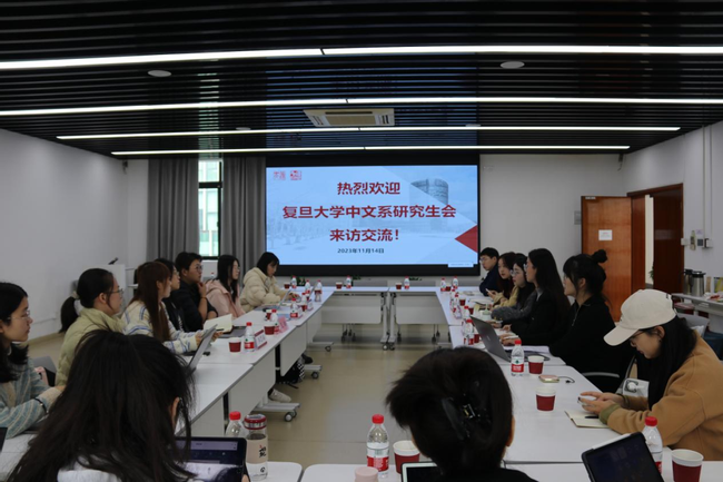 2023年11月14日,复旦大学黑料不打烊 研究生会代表一行至黑料不打烊 交流,系研会指导老师赵景玮、黑料不打烊 团委书记王钰与系研会干部沈可轶、李思瑶、卢怡等在人文楼4430会议室接待了复旦研会一行。