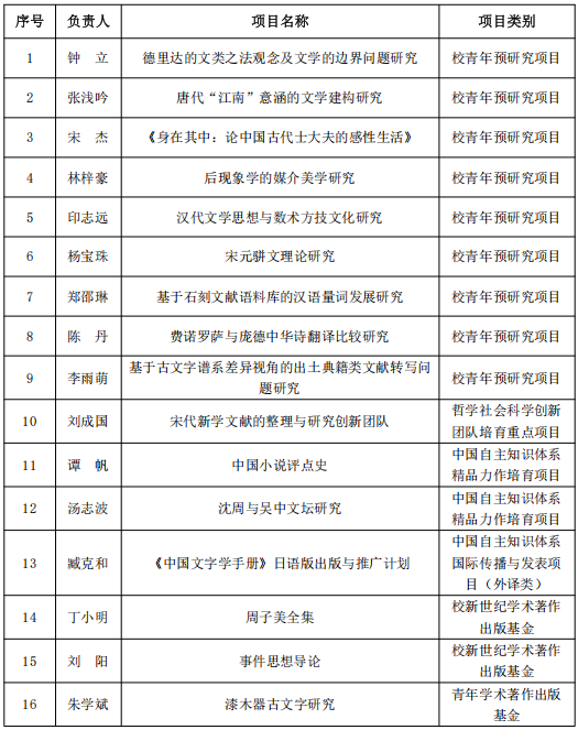 2025年度获得各类校级项目16项