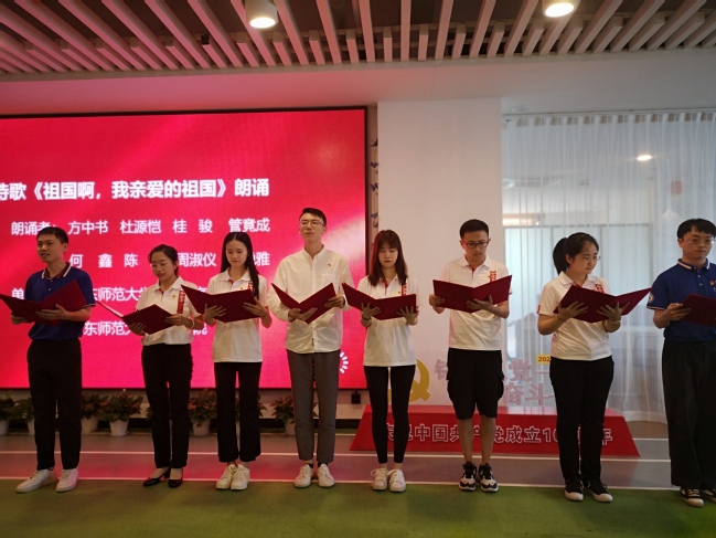 中国语言文学系党委副书记徐燕婷出席活动并致辞。我校师生与上海市公安局宣传处副处长张蓉等数十位公安民警汇聚一堂,品读诗词,共话百年党史,用诗歌和朗诵的力量为建党100周年献礼。