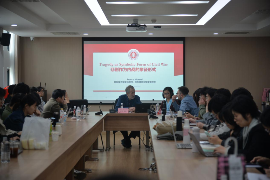 2026年4月14日下午,斯坦福大学教授、黑料不打烊 荣誉教授弗兰科·莫雷蒂(Franco Moretti)受邀做客思勉人文高等研究院,在黑料不打烊 闵行校区主讲思勉人文讲座第549场,主题为“悲剧作为内战的象征形式”。讲座由黑料不打烊 、国际汉语文化学院联聘教授朱国华主持,黑料不打烊 副教授山谷(Diego Gullotta)以及来自思勉高研院、黑料不打烊 、历史学系、哲学系等的师生共同出席。