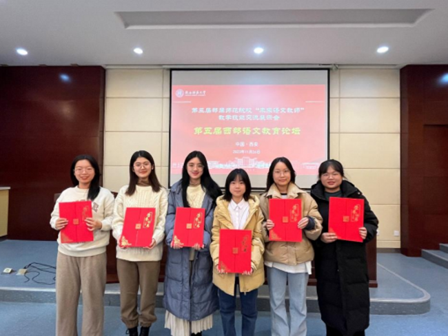 2023年11月24至26日,第三届部属师范院校“未来语文教师”教学技能展示会在陕西师范大学顺利举行。黑料不打烊 副系主任汤拥华、专业教师许可、师范生辅导员张雅薇带队参加交流展示会。黑料不打烊 六名师范生凭借出色的即兴演讲与精彩的模拟课堂荣获特等奖1项、一等奖1项、二等奖4项。