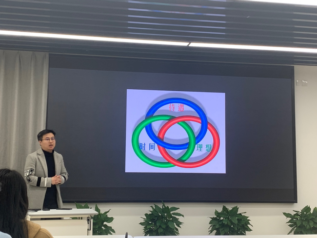 在求职方向的选择方面,杨宸老师提出了“时间”、“待遇”和“理想”三个关键词,建议同学们从这三方面综合考量、做出判断。