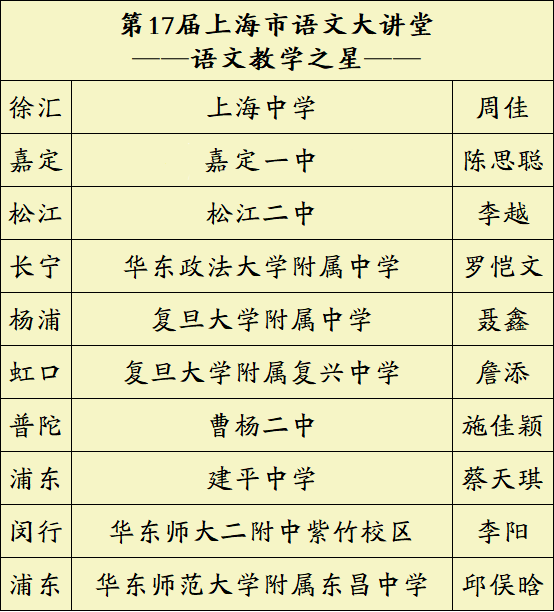 上海16个区选送了18位教龄在10年以下的优秀青年教师,通过教学录像、论文撰写、教案设计、板书设计、作文批改、问答题和选答题的层层选拔,10名优秀青年语文教师脱颖而出,成为2025年度“上海市语文教学之星”。