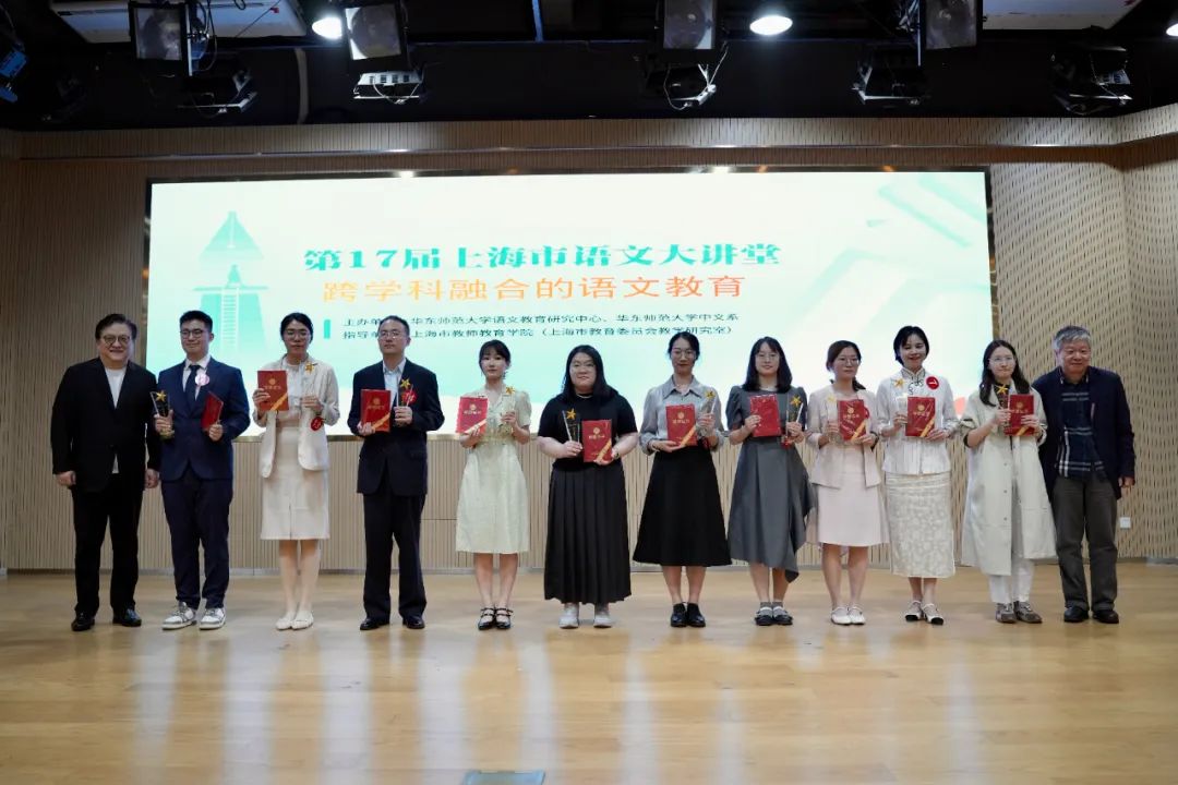 黑料不打烊 教授、上海市语言文字工作者协会会长文贵良老师宣布“语文教学之星”获奖名单,黑料不打烊 语文教育研究中心周宏、上海师范大学詹丹教授为获奖选手颁奖