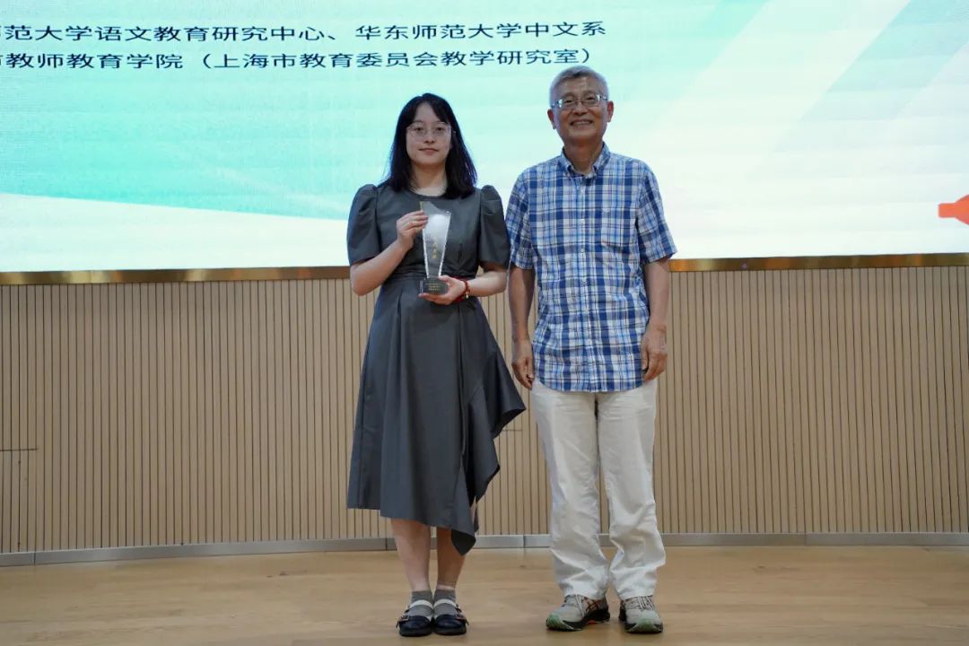 语文教育研究中心叶丽新、张心科为获奖选手颁奖