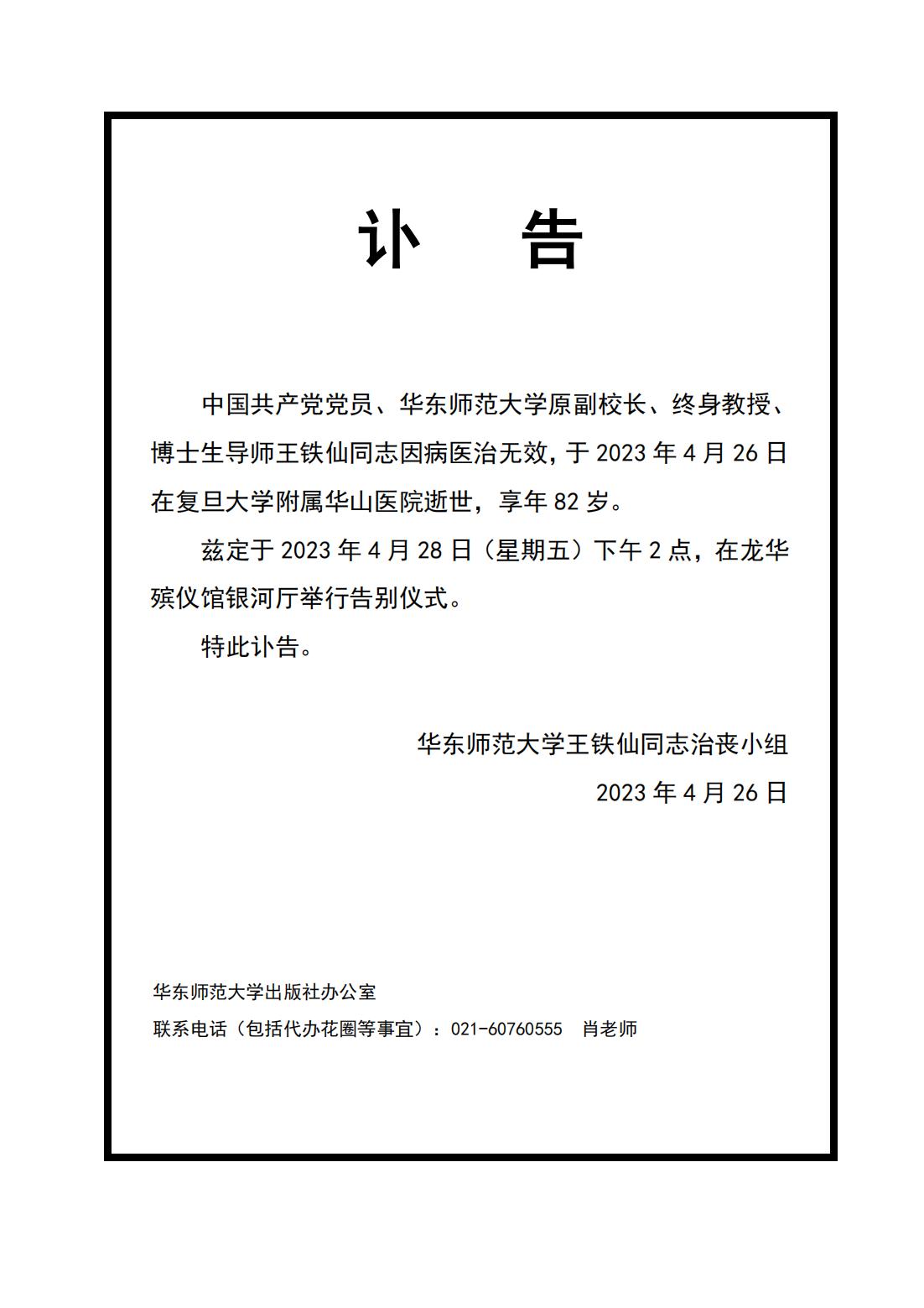 沉痛悼念王铁仙先生!