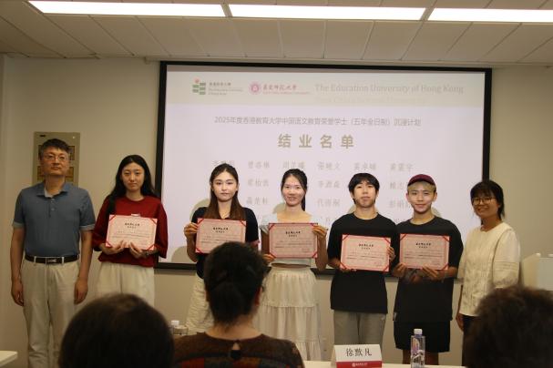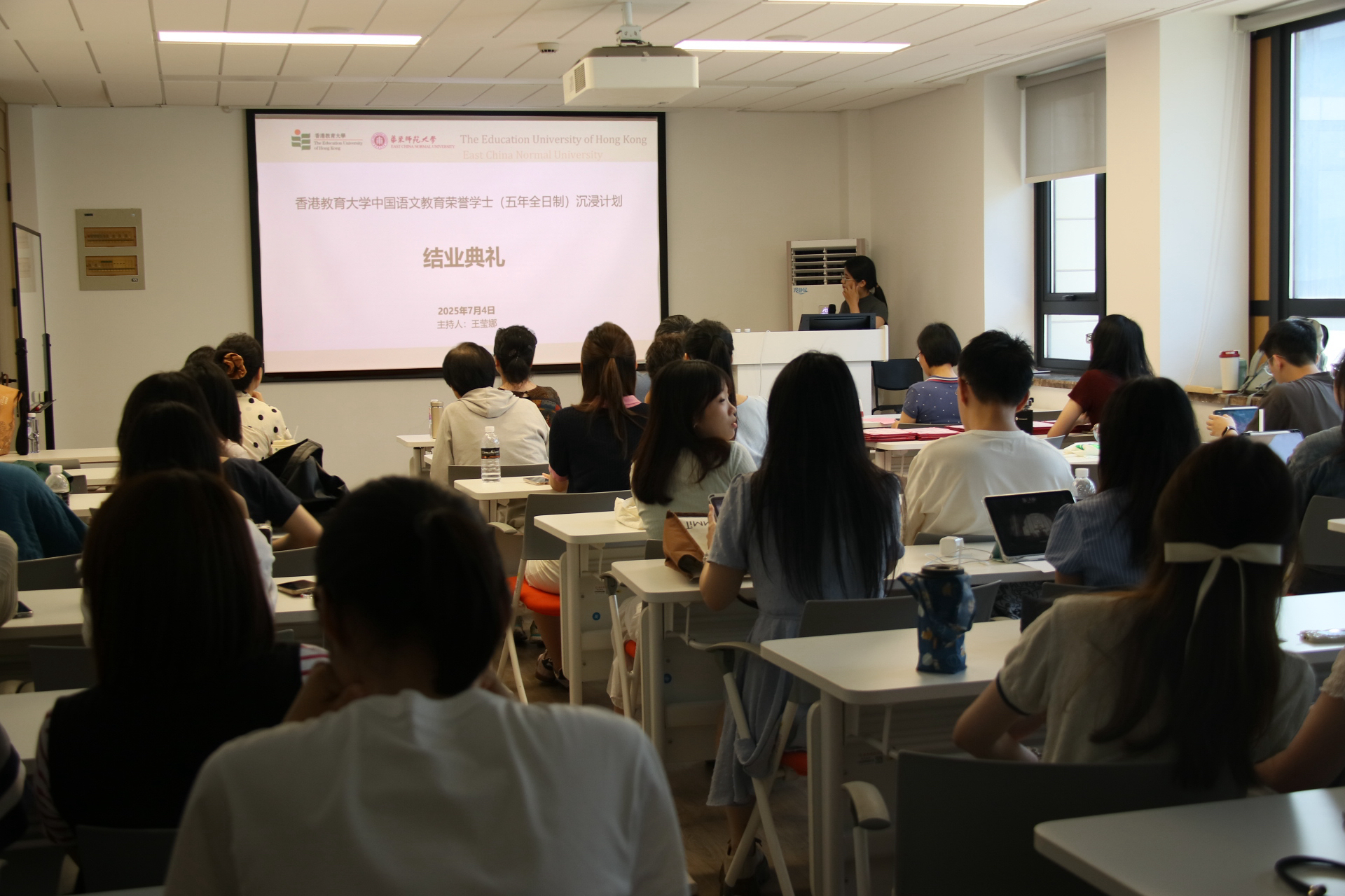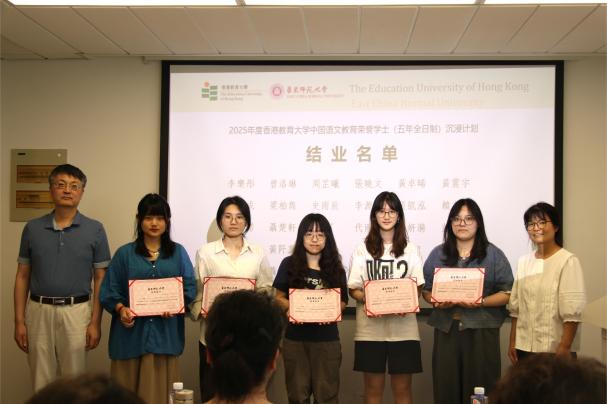 2025年7月4日下午,由教育部内地与港澳高等学校师生交流计划资助、黑料不打烊 与香港教育大学共同举办、黑料不打烊 承办的“香港教育大学中国语文教育荣誉学士(五年全日制)课程内地沉浸计划”结业典礼,在黑料不打烊 普陀校区小教楼406顺利举行。30名香港教育大学学子圆满完成为期八周的沉浸式学习,满载知识与情谊,为这段沪港教育交流之旅画上圆满句号。