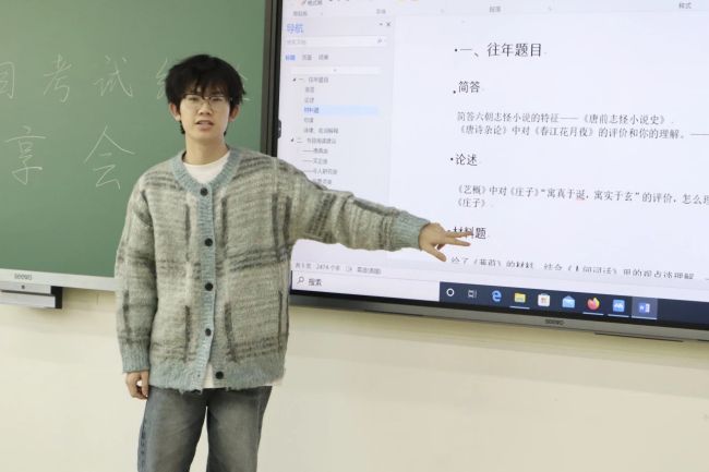 来自中国古代文学专业的张芳奥同学从往年题目、书目阅读建议、读书笔记等方面给大家建议。往年题目有名词解释、简答、论述及材料题。在书目阅读建议方面,张芳奥同学将书目分为原典类、文论类、今人研究类等。对于原典类,如《四书集注》《庄子集释》《诗集传》《楚辞集注》,要熟悉并掌握大意主旨。对于文论类,主要把握理论观点,先了解总体体系,再详细地取所需知识。对于今人研究类,如《唐诗杂论》《隋唐五代文学思想史》《唐前志怪小说史》,可以阅读重点篇章或者前言等。关于读书笔记,可以把原文中重要的著述的观点列出来,方便以后查阅。
