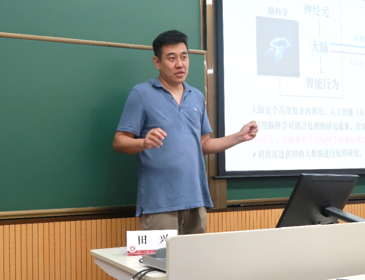上海纽约大学田兴副教授的讲座“具身加工在语言理解和言语产生中的作用——与人工智能对比的启示”,主要从人与人工智能在语言理解、言语产生两个部分的相似性展开,基于人工智能与人的学习机制,通过实验分析了人工智能与人在词汇语义表征的相似性,表明言语产生存在从运动到体感再到语音的连续表征转换机制。讲座介绍了大量实验、展示了不同脑图,反映了人工智能与人脑融合的研究趋势。
