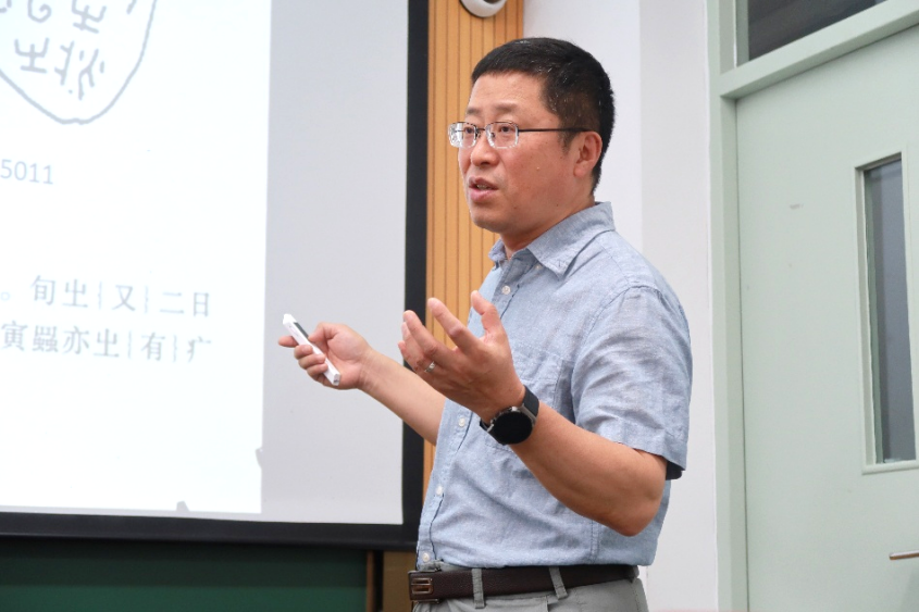 吉林大学冯胜君教授的讲座,以“中国文献学早期形态举例”为题。他介绍了中国古代不同载体的文献及其特点,着重讲解了竹简编连的变迁过程,强调现今所见古代文献的载体和当时之载体存在一定差异,与此同时,不可忽视早期文献存在删削和修改的现象。