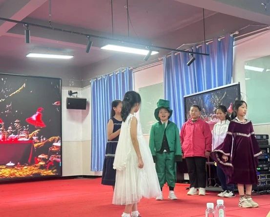 为激发孩子们的学习兴趣,推普夏令营打破传统教学模式,通过编写故事、话剧表演、影视配音等多元形式,让孩子们在趣味互动中主动亲近普通话,感受语言表达的魅力。在周昱彤的《“穿越”文字剧场》课程中,孩子们各饰角色,用普通话排练《爱丽丝梦游仙境》剧本。原本内向的女孩杨小乐在饰演“疯帽子”一角时,台词从结结巴巴到声情并茂,赢得了全班喝彩。“老师说我的声音像小太阳!”她攥着剧本的手微微发抖,“我之前一直不敢在大家面前说话,这是我第一次觉得自己的声音这么重要,我以后要多多尝试。”《古诗新唱》课程则让诗词学习充满韵律感。汪美含将《水调歌头》改编成流行歌曲,带领同学们用普通话进行演唱。“原来古诗可以这么好听!”赵曈在课后日记中写道,“我要教奶奶用普通话唱这首歌。”刘啸轩开设《声临其境:影视双语趣配音》课程,通过角色扮演、朗读练习、分组录制等环节,让孩子们在轻松的氛围中掌握配音的基本技巧,提升语言感知与团队协作能力。丰富多样的授课形式,让普通话学习跳出了枯燥的重复,变成了充满创造力的探索。孩子们在“玩”中开口,在“演”中提升,切实感受到语言的魅力,用普通话表达自我、连接世界。