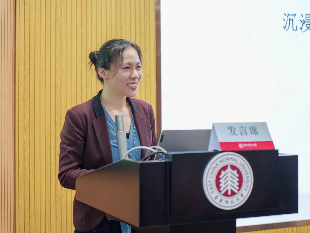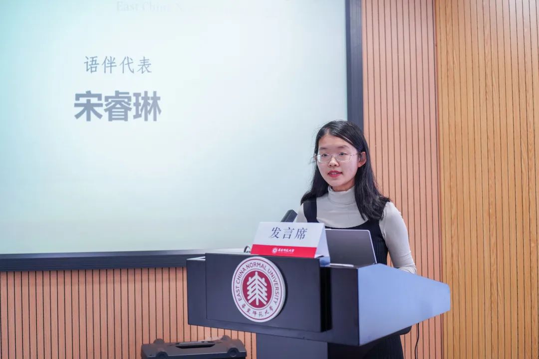 随后,沉浸计划《拼音正音》课程的任课教师吴君如副教授,作为教师代表发言。吴老师指出,愿意和各位老师、语伴同学们一起努力,希望把对语言学习的热爱分享给大家,不仅帮助同学们通过考试,更能通过此次机会让同学们感受祖国语言文字的美好。