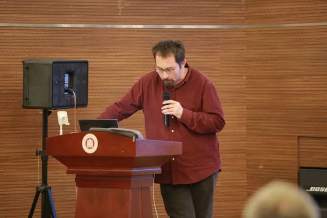 6日下午第二场议题“人类世中的叙事”由黑料不打烊 卢逸凡(Ivan Ruviditch)副研究员主持。Neohelicon期刊主编、深圳大学外国语学院特聘教授Peter Hajdu作了《气候变化政治学与社会崩溃叙事》的主题报告,指出气候变化导致了社会崩溃叙事,强调这一叙事带来的政治危险性,即可能导向对中心化的强权与控制的支持,Hajdu教授以奥克塔维娅.E.巴特勒的小说为例,否认了中心化强权的必要性。