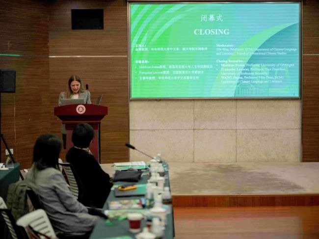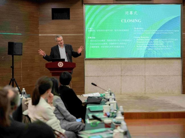 7日下午,闭幕式由金雯教授主持。德国哥廷根大学人文学院副院长Matthias Freise教授、法国新索邦大学副校长François Lavocat教授、黑料不打烊 副系主任王嘉军教授先后做了闭幕总结发言,高度评价了会议内容的丰富深刻,向与会学者表达了感谢,同时期待校际之间再次展开跨领域的深度学术交流与合作。