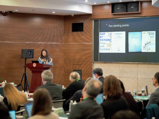 6日上午第一场议题“叙事与虚构”,由黑料不打烊 思勉人文高等研究院院长袁筱一教授主持。法国新索邦大学副校长Françoise Lavocat教授以《理解“跨层”(metalepsis)的新视角》为题,回顾了近年来“跨层”的研究史,通过热拉尔·热奈特的作品指出当今“跨层”研究面临的问题与挑战,并进一步探索、讨论了“跨层”的潜力。