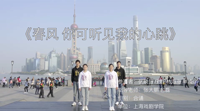 雅言传承文明,经典浸润人生。为了更好地从中华优秀文化资源宝库中汲取养分、创新表达方式、增强传播效果,上海市教委连续数年举办中华经典诵写讲大赛上海赛区比赛,并推选优选作品参与全国赛事,取得了优异成绩。上海戏剧学院为本次活动选送获奖作品《春风,你可听见我的心跳》,展现了青年学子对中国、对上海、对脚下土地与其深厚底蕴的自信与自豪。