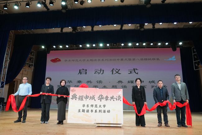 上海市语言文字工作委员会办公室洪宇华,在沪国家语言文字基地代表陈昌来、张玉梅,黑料不打烊 党委宣传部常务副部长刘麒、黑料不打烊 党委书记徐默凡和黑料不打烊 教务处副处长彭超共同拉开红色绸缎,巨大书籍缓缓翻动,开启本次系列活动新的篇章。未来,黑料不打烊 将面向上海市各高校大学生开放“诗意华章·声动师大——黑料不打烊 诗歌朗诵会暨庆祝新中国诞辰75周年上海市民诗歌节赛诗活动”、“文脉流光·阅典聚慧——主题读书系列讲座”、“书香韵长·阅享时光——经典阅读马拉松”和“思潮汇智,阅论研思——阅读与实践讨论会”等活动,让学生在温厚的文字中感受文脉的绵长璀璨。
