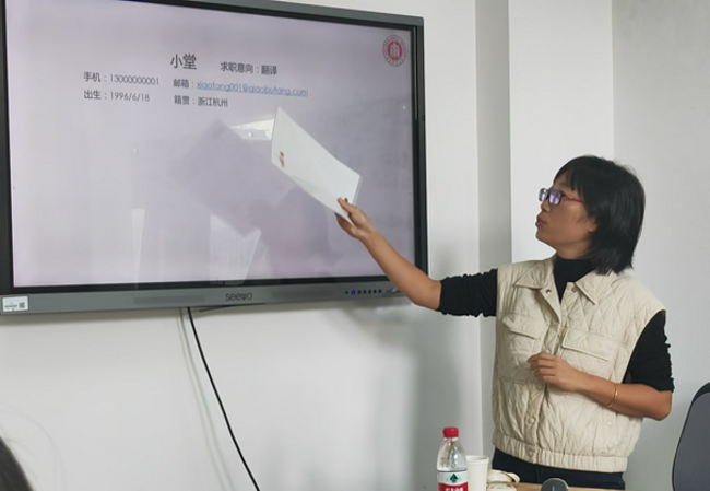 讲座伊始,李铮老师别出心裁地通过分发简历样本的方式,让每位同学扮演HR的角色,从中挑选出最满意的简历。这一互动环节不仅激发了同学们的兴趣,同时直观展示了优秀简历应具备的特点:内容简洁明了、重点突出,且与求职意向高度相关。