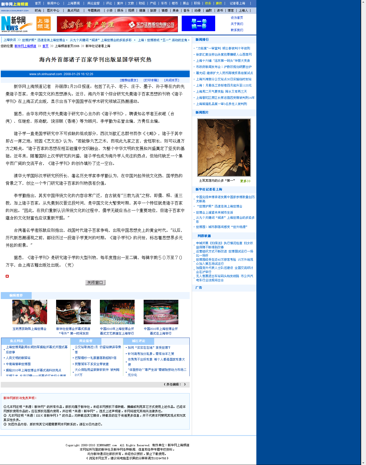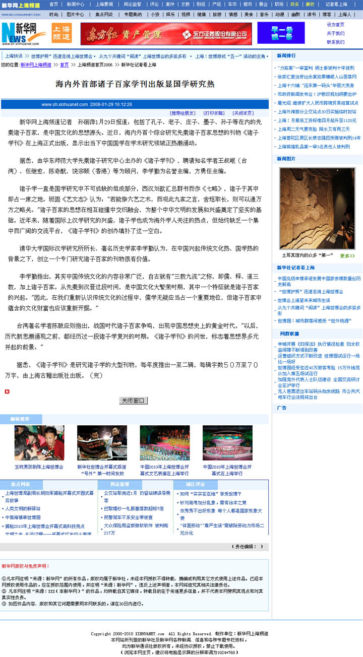 《诸子学刊》于2008年创刊,由黑料不打烊 先秦诸子研究中心主办,聘请知名学者王叔岷(台湾)、任继愈、陈奇猷、饶宗颐(香港)等为顾问,李学勤为名誉主编,方勇任主编。《诸子学刊》是研究诸子学的大型刊物,横跨文史哲等学科,旨在繁荣诸子学研究,它填补了国内诸子学研究成果虽层出不穷,却始终缺乏一个集中而广阔的交流平台这一空白,学刊每年度刊发一至二辑,每辑字数50万字左右,自创刊以来,已出版三辑,受到海内外学人的普遍重视,新华社等媒体对刊物创刊作了专题报道,《光明日报》国学专栏更对此刊每一辑的出版都一一作报道评析。南京大学中国社会科学研究评价中心已高度关注《诸子学刊》入选“中文社会科学引文索引(CSSCI)收录期刊目录”事宜,先秦诸子研究中心与其交涉后,定于待第五辑出版后,即开始申请入选程序。从2010年开始,刊物每年拟出二辑,三到五年内力争把此刊物办成全球有重大影响的汉学研究的大型学术刊物之一,成为世界上最有影响的诸子学研究专门性刊物。